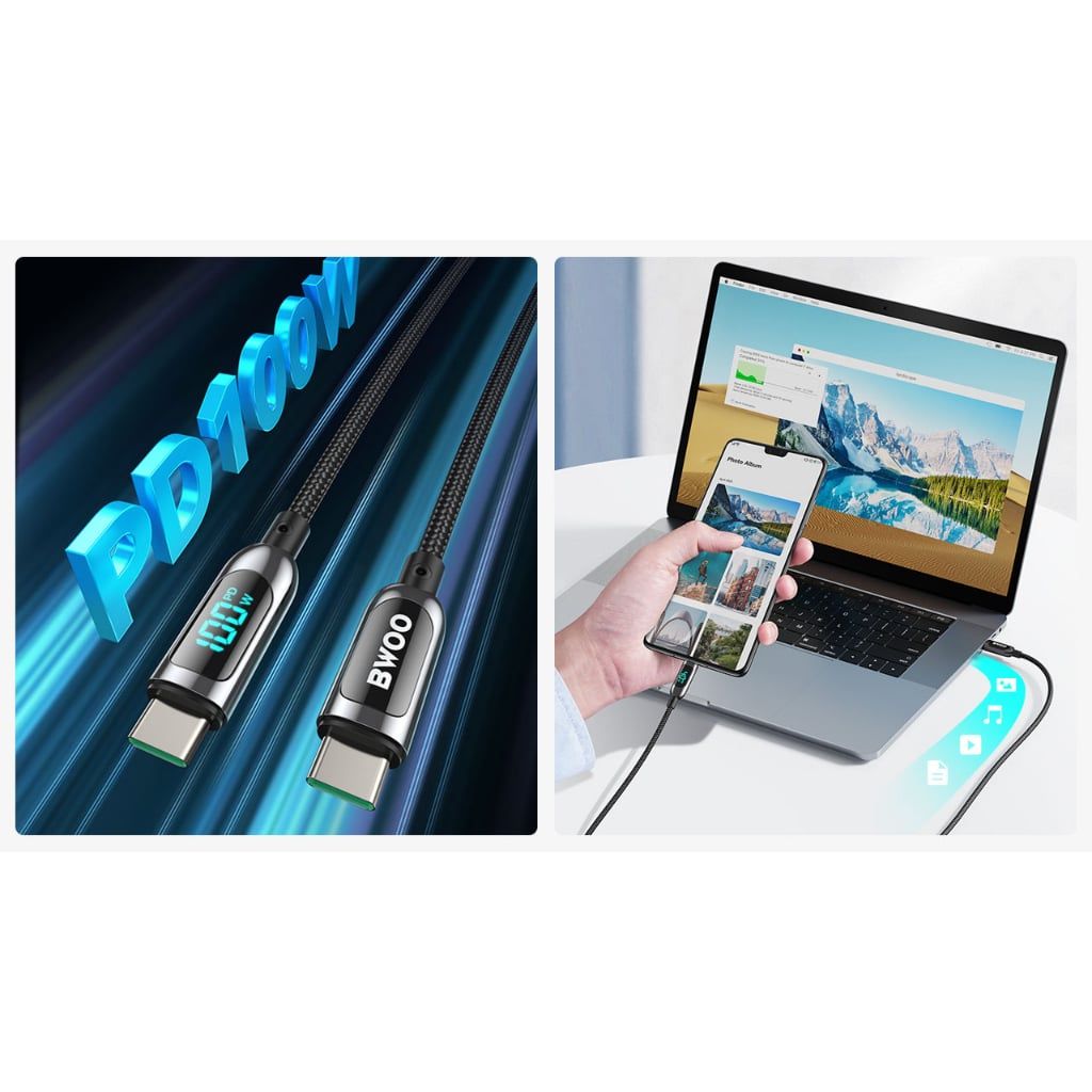 Dây cáp sạc nhanh Bwoo Type-C to C | PD100W | Dài 1,2M | Bện Dù - X275